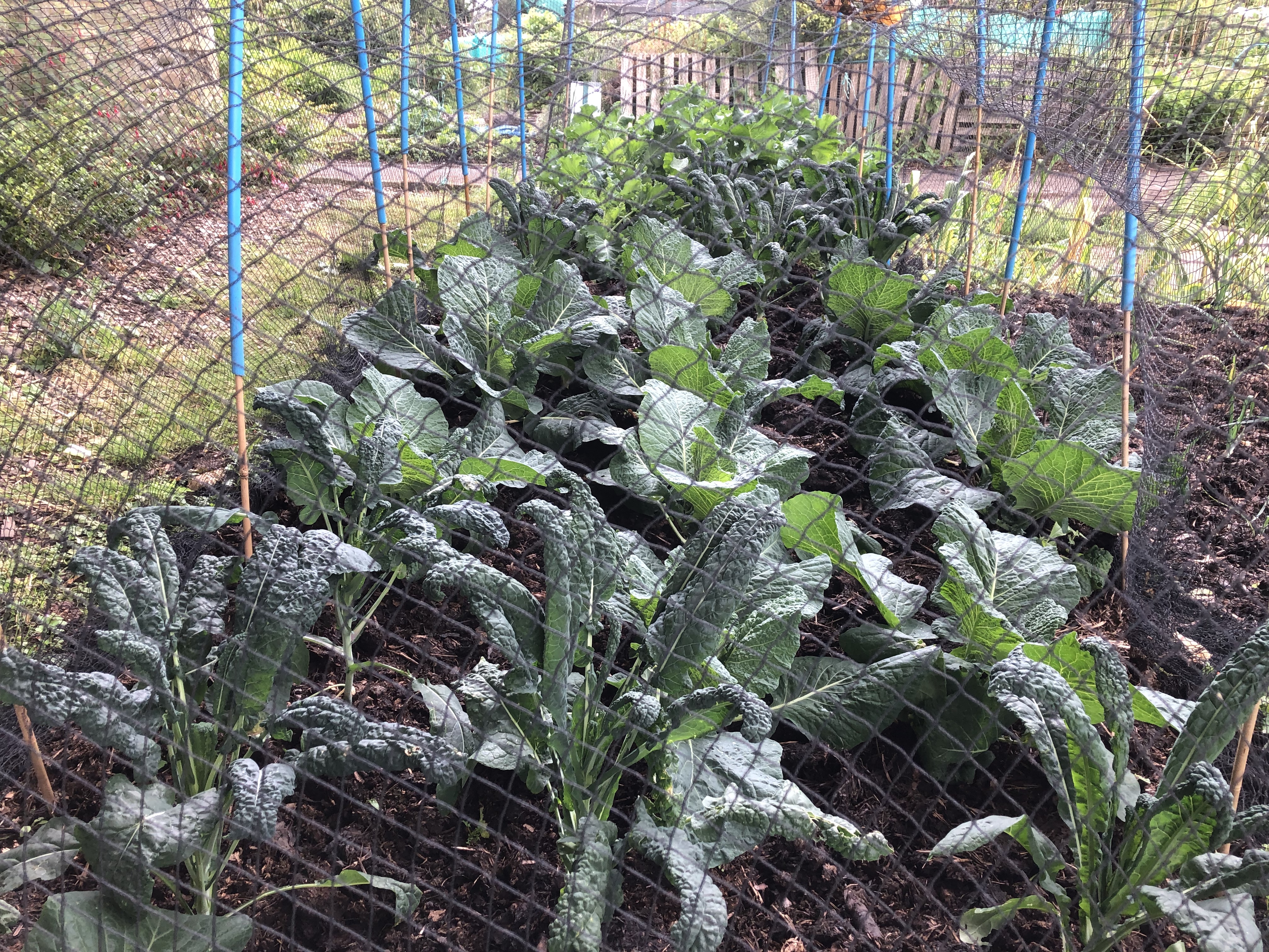 Crops such as onions, garlic, and leeks grow during the autumn, winter, and early spring, and so being under large overhanging trees is no problem, as there are no leaves on them for much of that time, and they get plenty of light. Brassicas are shade-tolerant anyway, as are salads.