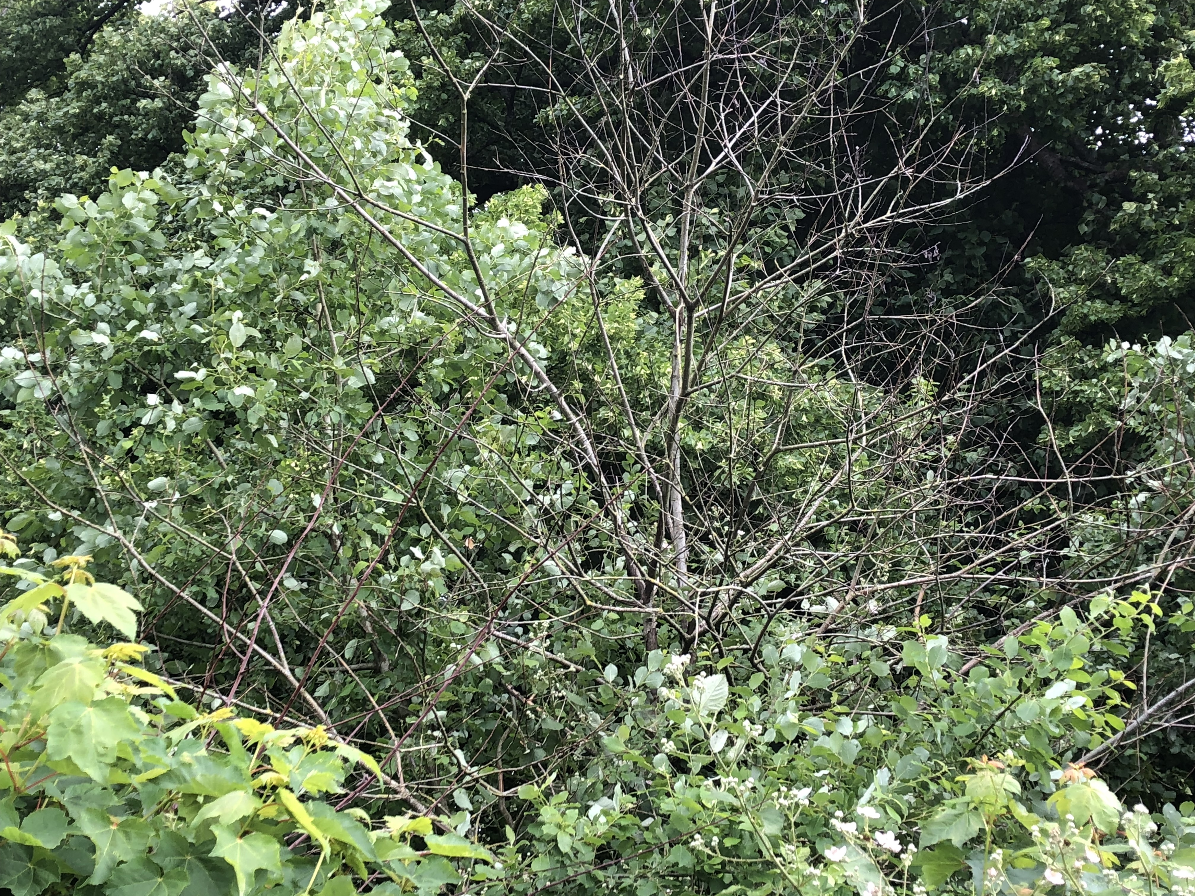 Unfortunately the PPA site hasn’t escaped such ravages as silver leaf and ash dieback. Where plot holders have asked for assistance, volunteers have removed members of the prunus family affected by the first, and the Council are watching some large ash trees, by plot ninety for the second. There’s also a clump of semi-mature willows, which appear to be pretty lifeless, and that’s perhaps down to the repeated but so far unsuccessful attempts by contractors to eradicate Japanese knotweed growing around them. (However, as it stands there at least isn’t any of it on the PPA side of the fence this year.) The trees have been reported to the Council as needing removal for safety reasons.