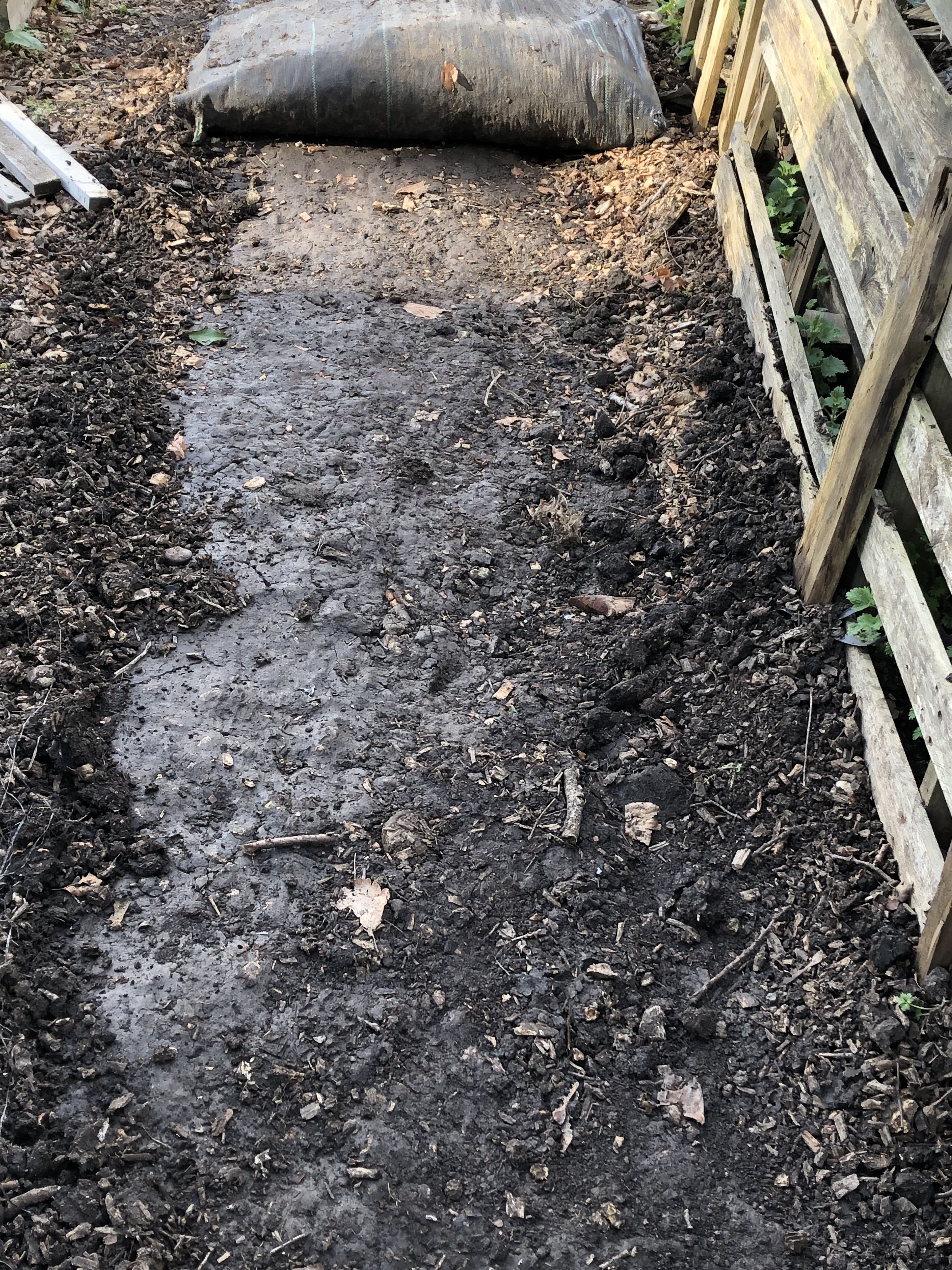 We’re sorry to have to report then, that a plot holder has suffered repeated damage to a wood chip path that they have installed beside their plot, with the underlay having been ripped back and the path destroyed more than once.
